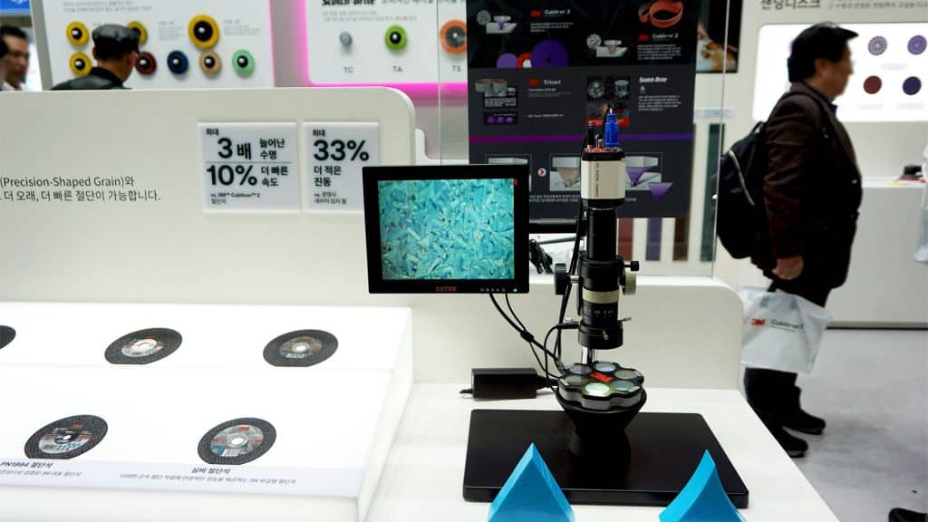 특히나 현장에는 실제 절단석의 입자까지 들여다 볼 수 있는 ‘제품샘플’과 ‘현미경’도 배치되어 있어서
